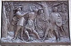- Lambert Closse, gouverneur intérimaire de Montréal, le fusil à la main, accompagné de sa chienne Pilote;