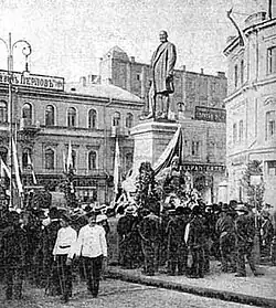 - 1 2 Center for Urban History of East Central Europe (en), The monument to Stolypin in Kyiv in front of the Semadeni café.
