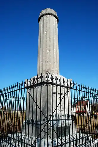 Le piédestal porte une colonne brisée ornée de cannelures et ceinte d'une couronne de laurier près de son sommet. La colonne brisée évoque la courte carrière de l'officier mort à 29 ans[1].