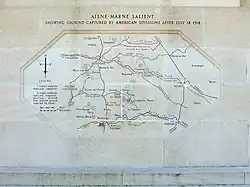 Au-dessous, une grande carte de la région, conçue par Paul Philippe Cret, retrace la progression des forces américaines à partir du . Devant la carte, une table d'orientation indique les directions et les distances des points d'intérêt historique.