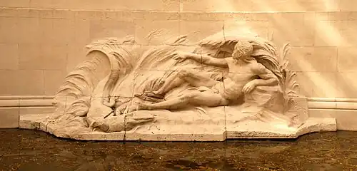 Le monument a été conçu par le sculpteur Thomas Vinçotte[1], dont on trouve la signature en bas à droite.