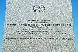 Sous cet hommage figurent les noms des unités britanniques et hanovriennes qui participèrent à la bataille.