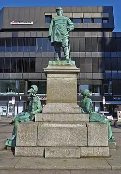 - (de) Cet article est partiellement ou en totalité issu de l’article de Wikipédia en allemand intitulé « Bismarck-Denkmal (Düsseldorf) » (voir la liste des auteurs).