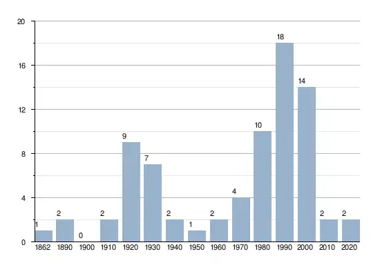 Le graphique suivant résume le nombre de premières protections par décennies (et 1862) :