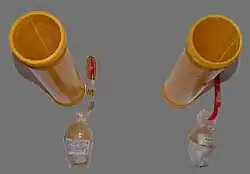 Une application particulière est le mortier silencieux par fermeture du tube de lancement à l'arrière du projectile, piégeant les gaz générateurs de bruit, après éjection du berceau pourvu d'une tige :