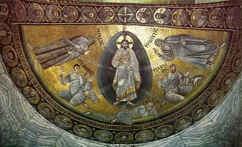 Le dôme de l’église Sainte-Sophie de Thessalonique est décoré d’une mosaïque représentant l’Ascension datant d’environ 885. La composition y est semblable à celle des grands baptistères de Ravenne avec les apôtres entre des feuilles de palmiers entourant le Christ. Cette représentation est toutefois inhabituelle en ceci qu’après la période iconoclaste, les dômes ne comportaient que l’image du Pantocrator[17].