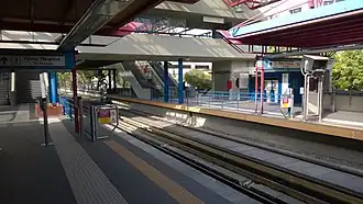 La station est accessible depuis ses deux côtés. Une passerelle située au milieu des quais, équipée d'ascenseurs et d'escaliers mécaniques, permet l'interconnexion entre les deux quais.