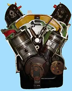 - Moteurs d'avions (depuis la Première Guerre mondiale) : Liberty L-12, V12 Daimler-Benz (inversé), Hispano-Suiza, Rolls-Royce, etc.