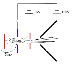 - l'ionisation par génération d'un plasma : soit par une source HF soit par un arc électrique.