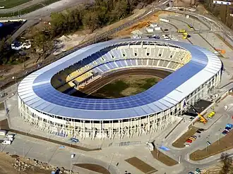 D'une capacité de 15 500 places assises, il est principalement utilisé pour les courses de speedway et reçoit le KS Toruń.