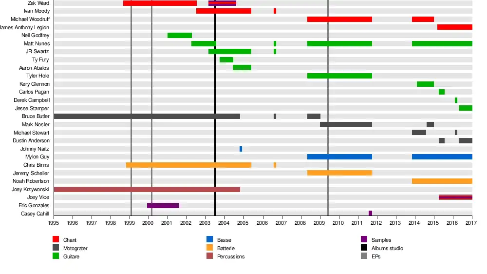 - Ivan « Ghost » Moody - chant (2002–2005, 2006)