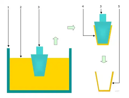 Les étapes suivantes constituent le moulage par trempage[1] :