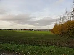Durant l'année 2012, trois éoliennes sont construites le long de l'autoroute A8, sur les terres dites des Grandes Communes, du rieu du Carmois et du rieu de la Drève[22]. Propriété d'Electrabel (deux éoliennes) et de la société Ventis (une éolienne)[23], elles sont du type REpower MM92[24], similaires à celles construites sur le site voisin de Leuze-en-Hainaut. La production prévue est d'environ 16 millions de kWh par an[23]. Le site est inauguré en [25]. Une quatrième éolienne (appartenant à la société Ventis) est construite dans un deuxième temps. Elle est opérationnelle en [26].