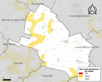 Le retrait-gonflement des sols argileux est susceptible d'engendrer des dommages importants aux bâtiments en cas d’alternance de périodes de sécheresse et de pluie. 14,2 % de la superficie communale est en aléa moyen ou fort (52,8 % au niveau départemental et 48,5 % au niveau national). Sur les 140 bâtiments dénombrés sur la commune en 2019, 0 sont en aléa moyen ou fort, soit 0 %, à comparer aux 70 % au niveau départemental et 54 % au niveau national. Une cartographie de l'exposition du territoire national au retrait gonflement des sols argileux est disponible sur le site du BRGM[16],[Carte 2].