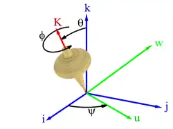 - le vecteur unitaire directement orthogonal au couple (, ). L'angle entre et est l'angle de précession. Soit le vecteur unitaire directement orthogonal au couple (, ),