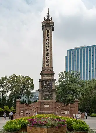 Les 11 et , plus de 10 000 personnes protestent à Chengdu et les étudiants et les marchands organisent une série de grèves et de boycotts[7]. Le 1er septembre, la compagnie de la voie Sichuan-Hankou adopte une résolution des actionnaires appelant le public du Sichuan à ne plus payer les taxes sur le grain du gouvernement Qing. Le , le gouverneur-général du Sichuan, Zhao Erfeng fait arrêter Pu Dianjun et les autres meneurs et fermer la compagnie[15]. Des protestants enragés marchent alors vers son bureau de Chengdu en demandant la libération de Pu[15]. Zhao Erfeng ordonne à ses troupes d'ouvrir le feu et des douzaines de manifestants sont tués[15]. 32 morts sont comptés à Chengdu[7].