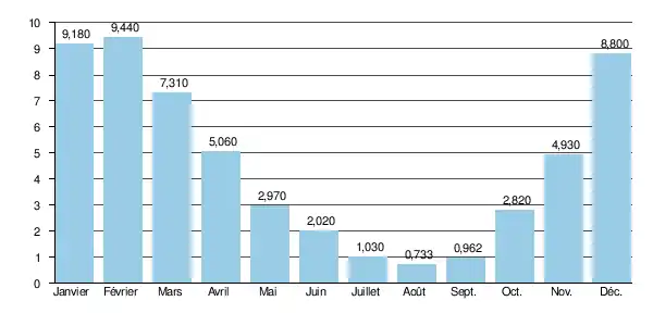 - ↑ Banque Hydro - station B7200010 - La Meuse à Chooz (ne pas cocher la case "Station en service")