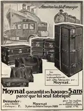 En 1905, la Maison Moynat entame une longue collaboration avec l’artiste Henri Rapin. Alors qu'il sort de l'École Nationale des Beaux-arts[10], Jules lui demandera d'illustrer les catalogues de la maison. Ensuite il réalise différentes étiquettes sur le thème du voyage qui deviennent une signature discrète à l’intérieur des malles Moynat.