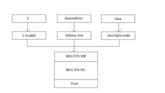 - Java : Un compilateur Java traduit le code source en des classes Java qui sont ensuite traduites en code MEL ;