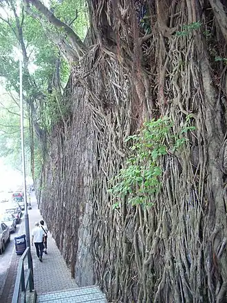 Les murs colonisés par des arbres sont aujourd'hui volontairement créés en cultivant des arbres dans des brèches de murs de soutènement. Au début de l'urbanisation de Hong Kong, la verdure des sites n'étaient pas pris en compte lors de la construction des routes qui étaient souvent étroites et n'avaient aucun espace pour ajouter de la végétation. Les arbres sont naturellement sortis des murs et présentent l'avantage de n'occuper aucun espace supplémentaire au niveau du sol et de protéger les routes de la chaleur de l'été.