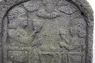 Deux prêtres sur une stèle funéraire. Basalte, époque romaine, IIe siècle apr. J.-C.