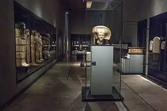 Parmi les pièces les plus éminentes sont les fameuses statues doubles du pharaon Nyouserrê Ini représenté jeune et âgé, les statues des pharaons Amenemhat III, Ramsès II, Thoutmôsis III et Akhenaton, les sphinx de Sésostris III et Amenhotep II, le couvercle du sarcophage de la reine Setdjehouti.
