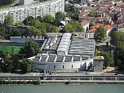 Le , le nouveau bâtiment abritant les collections est inauguré par le premier ministre Édouard Balladur[168]. Situé place de Lavalette, en bordure de l'Isère, il triple la surface d'exposition de l'ancien musée et son coût total est de 203 millions de francs. Il se complète d'un jardin de sculptures dans le parc Albert-Michallon, un espace arboré de 16 000 m2 entourant un mur d'enceinte de la ville de la fin du XIXesiècle. Serge Lemoine, conservateur du musée, explique et précise devant les médias: «On n'a pas construit un bâtiment [...] puis, ensuite, on a essayé de voir ce que l'on pouvait mettre dedans. C'est exactement le contraire que nous avons fait. Nous avions une collection, l'une des toutes premières de France et d'Europe, et c'est à partir de cette collection que nous avons conçu, écrit le programme muséographique et puis ensuite construit le bâtiment.»[169].