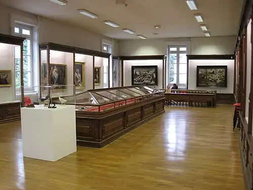 La section peinture du premier étage présente une trentaine d'œuvres des écoles française (Gustave Courbet, François-André Vincent, Pierre-Charles Le Mettay, Auguste Pointelin, Nicolas-Bernard Lépicié, Alexandre Cabanel...), nordique (Pieter Brueghel le Jeune, Adriaen Pietersz van de Venne…), italienne (Pietro della Vecchia, Luca Giordano…)…