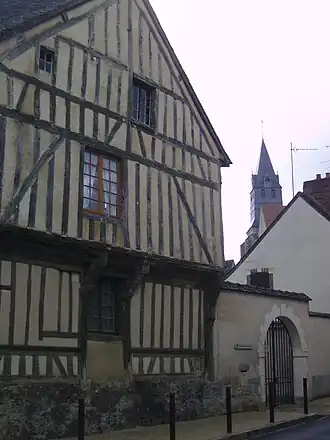 La maison présente une façade à colombages du XVe siècle[3]. Les poutres qui supportent l'encorbellement sont étayées par deux corbeaux. Celui de droite comporte un bas-relief de saint Vincent, patron des vignerons, en dalmatique et portant d'une main une serpette et de l'autre un évangile. Celui de gauche comporte un blason effacé.