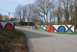 | Composition | Dominique Terrana | 1962 | Ancien restaurant universitaire - B8 | Peinture Plexiglas | no 53 | no 24 | 50° 35′ 04,574″ N, 5° 34′ 13,83″ E | ![]() |