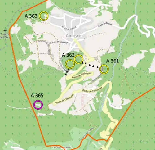 - A 361 Corbeyrier-Ravin : fortification de campagne construit durant l'été 1940 situé à l'extrémité Est du mur antichars, proche du barrage T7003, à qui il tourne le dos. Il contrôlait le ravin du Torrent d'Yvorne qui permet à des fantassins de contourner le barrage. L'embrasure FM de droite est face au ravin, celle de gauche contrôle l'accès venant de Vers-Cort, le hameau en dessous de Corbeyrier. L'entrée de l'ouvrage se situe face à l'embrasure de gauche.