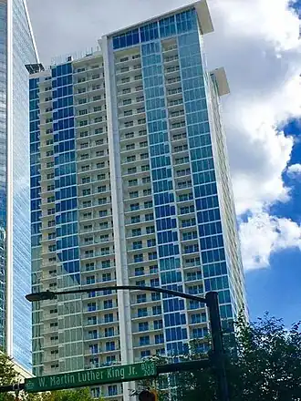 Le Museum Tower Charlotte est un immeuble de 43 étages dans le quartier chic de Charlotte, en Caroline du Nord. Le bâtiment mesure 139 m et comprend 394 unités.