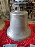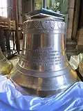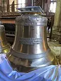 | Cécile (volée) | 3 046 kg | si♭ 2 | « EN L'HONNEUR DE SAINTE CECILE ET DE LA MUSIQUE / ET DONT LA GRACIEUSE STATUE ET LE BAS-RELIEF SCULPTES PAR CLODION / POUR LE JUBE DE LA FIN DU XVIIIEME SIECLE / ONT ETE REPLACES, DANS L'UNE DES CHAPELLES LATERALES NORD. » | Saint-Romain | 2015 | Fonderie Paccard | |||