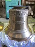 | Eudes | 178 kg | mi 4 | « FAMEUX ARCHEVÊQUE DE ROUEN, PRÉLAT DU PAPE, / AMI DE SAINT-LOUIS DONT LE NOM FUT DONNÉ AU MOYEN AGE / À L'UNE DES CLOCHES DE LA TOUR ST ROMAIN / "LA RIGAUD" / DISPARUE DEPUIS, EGALEMENT ENTERRÉ DANS LA CATHÉDRALE » | Saint-Romain | 2015 | Fonderie Paccard | |||