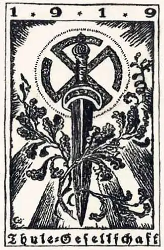 C’est la Société de Thulé qui préside en 1919 à la formation du Parti ouvrier allemand DAP, le parti nazi. La société de Thulé sera la pépinière de plusieurs futurs chefs du mouvement puis du régime nazi (Ian Kershaw cite notamment Gottfried Feder, Karl Harrer, Hans Frank et Rudolf Hess[8]. Si un certain nombre des adeptes de la Société Thulé étaient des membres haut placés du Parti nazi, Hitler lui-même n'en devint jamais membre. Toutefois, c'est un membre de la Société Thulé, le dentiste Dr Friedrich Krohn, qui choisit le symbole du svastika pour le Parti nazi.