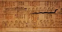 Rê étant considéré comme le dieu du soleil, entre autres, lorsque le soleil disparaissait chaque soir à l'horizon, le dieu Rê changeait de moyen de transport pour adopter une barque sacrée et traverser le Nil souterrain. Au cours de ce périple, Rê traversait les douze portes correspondant aux douze heures de la nuit (de 5 h du soir à 5 h du matin) dans le monde souterrain, la Douât, et devait déjouer les pièges des forces du chaos tentant de renverser à tous moments la barque du dieu du soleil. Il est aidé en cela par le dieu Seth qui, se tenant à la proue de la barque solaire, lance ses traits sur Apophis. Ce périple avait pour but la renaissance du dieu Rê chaque matin ramenant ainsi la lumière aux habitants du « monde d'en haut ». Cette renaissance de Rê, représentée par le lever du soleil, était considérée également comme la renaissance du monde et le signe que le dieu Rê avait triomphé des forces du chaos durant son périple.