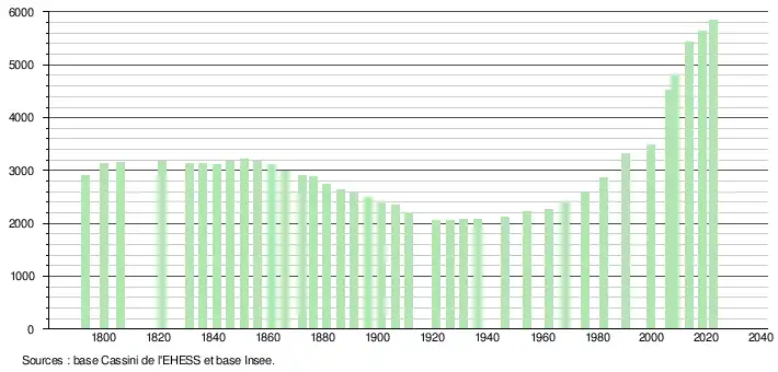 5 839 hab. (2022 en évolution de +4,03 % par rapport à 2016)