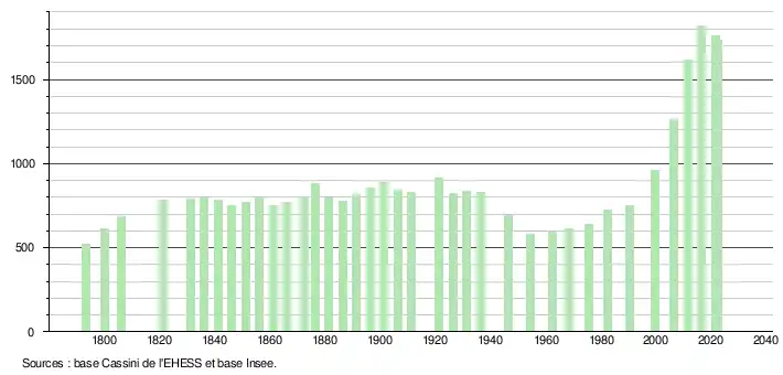 De 1962 à 1999 : population sans doubles comptes ; pour les dates suivantes : population municipale.