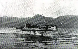 Dès 1908, Alexandre Graham Bell et Frederick Walker Baldwin s’adonnent à différentes expériences liées à la technologie de l’hydroptère sur le lac Bras d’or dans la province de la Nouvelle-Écosse. Le premier hydroptère de Bell, le HD-1, atteint des vitesses de 72 km/h en 1911 et de 80 km/h en 1912. Le HD-2 se brise, puis apparaît le HD-3 en 1913[11]. La Première Guerre mondiale impose un moratoire sur le perfectionnement des hydroptères[12].