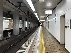 La station dispose de cinq accès équipés d'escaliers et deux ascenseurs pour faire le lien entre la surface et le la billetterie et le contrôle du niveau -1. Pour accéder aux quais elle est équipée d'escaliers, d'escaliers mécaniques et d'ascenseurs faisant le lien entre le niveau -1 et les quais latéraux du niveau -2. La station est accessible aux personnes à la mobilité réduite, y compris la correspondance souterraine avec la gare de Kōsoku Nagata.