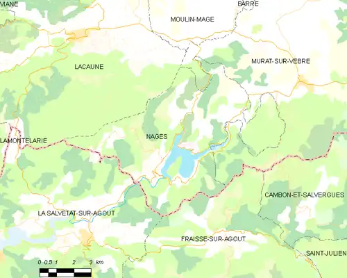 Nages [na.ʒə] (en occitan Najas ['na.d͡ʒs]) est une commune française située dans le département du Tarn, en région Occitanie. Sur le plan historique et culturel, la commune est dans le Lacaunais, un ensemble de plateaux où l'élevage de brebis laitières est prépondérant.