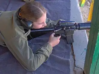Une jeune fille (13-14 ans) s'entraînant au tir dans un bataillon Gadna.