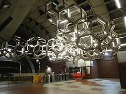 En 1984, l'artiste québécois Pierre Granche (1948-1997) réalise une installation au plafond de la mezzanine de la station. Cette œuvre intitulée Système est « une structure spatiale et sculpturale composée de 28 unités modulaires en aluminium poli sert de support à l'éclairage de la mezzanine. Géométriques par leur forme, les modules font 3,3 mètres de diamètre et comportent 12 hexagones et 6 carrés chacun »[11].