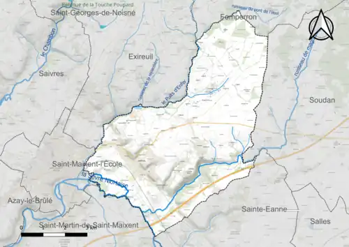 Les communes limitrophes sont Exireuil, Fomperron, Sainte-Eanne, Saint-Maixent-l'École, Saint-Martin-de-Saint-Maixent et Soudan.