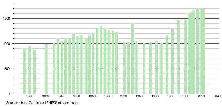 - ↑ Fiches Insee - Populations de référence de la commune pour les années 2006, 2007, 2008, 2009, 2010, 2011, 2012, 2013, 2014, 2015, 2016, 2017, 2018, 2019, 2020, 2021 et 2022.