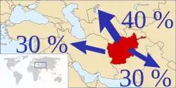 Environ 60 % de cette quantité serait convertie en morphine et en héroïne dans le pays. La quantité de morphine et d’héroïne produites en Afghanistan pour l’exportation était estimée à 630 tonnes (entre 519 et 774 tonnes). Près de 40 % de la production totale a été exportée sous forme d’opium[33].