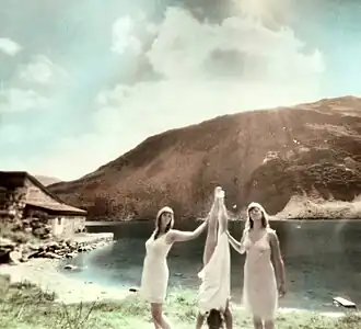Située sur un terrain ambigu où le rêve et la réalité s’opposent, cette série d’images de sténopés peintes à la main en noir et blanc juxtapose le paysage idyllique des Alpes suisses avec des corps féminins guindés, leurs figures aussi désordonnées que celle d’une poupée abandonnée. Ces femmes anonymes sont délibérément ambiguës et évoquent un sentiment universel de perte et de déséquilibre. Dans cet état de réalité modifié, l’immobilité et le silence imprègnent chaque image. C’est un calme presque postapocalyptique, le paysage est ponctué d’éléments artificiels, de monuments en ruines, marquants un monde en voie de disparition[2].