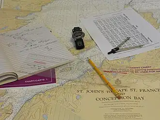 - hors de vue de terre, la navigation consiste à se placer en coordonnées géographiques (latitude et longitude). La méthode utilisée est alors la navigation à l'estime ; le point ainsi « estimé » est « recalé » plus ou moins fréquemment grâce à des points astronomique et, naguère, avec l'utilisation éventuelle de systèmes radioélectriques terrestres (CONSOL, LORAN, Oméga, Decca, etc. aujourd'hui pour la plupart éteints) ;