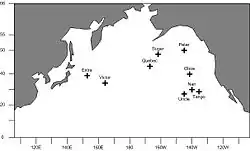 - ↑ (en) United States Weather Bureau, « Pacific Stations Relocated », Weather Bureau Topics, vol. 11, no 4, , p. 48 (lire en ligne [PDF], consulté le )