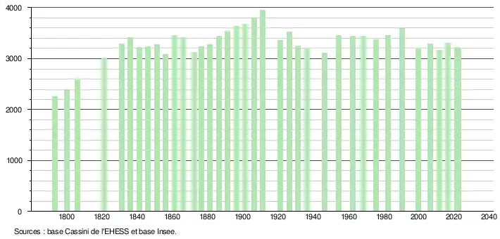 - ↑ Fiches Insee - Populations de référence de la commune pour les années 2006, 2007, 2008, 2009, 2010, 2011, 2012, 2013, 2014, 2015, 2016, 2017, 2018, 2019, 2020, 2021 et 2022.